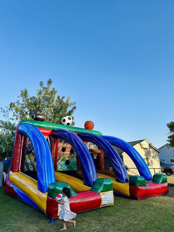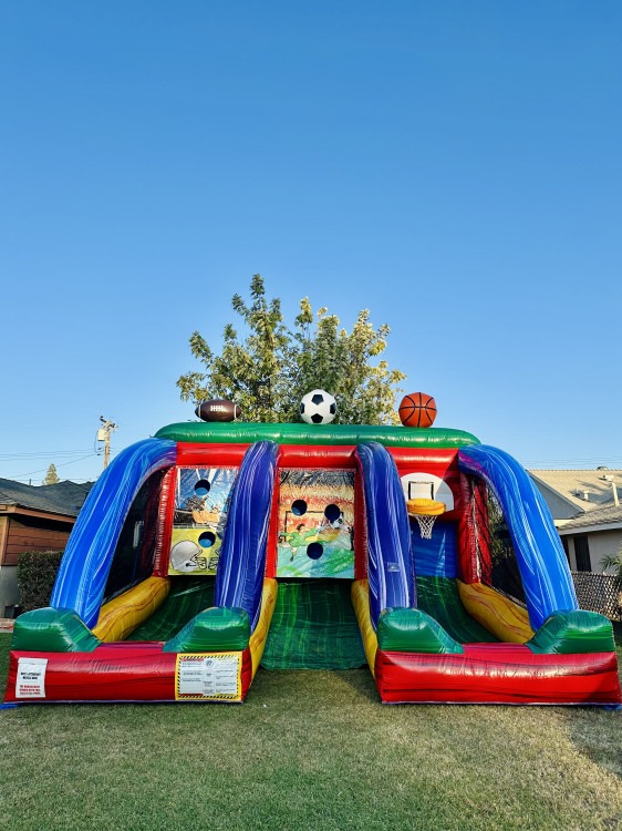 Keep the energy of a mini sports arena at your event with this 3 in 1 Sports Game Combo. Designed for active kids and teens, it combines three popular game elements into one inflatable unit so players can bounce, shoot, and score without switching stations. The roomy bounce area gives players space to jump and play, while built-in targets and hoops let them test their accuracy with bean bags or soft balls. Durable vinyl construction and reinforced seams stand up to repeated use at backyard parties, school events, or community gatherings. Easy to set up and supervise, this combo keeps multiple kids engaged at once, encourages friendly competition, and delivers hours of safe, high-energy fun. Great for sports-themed birthdays, team celebrations, and any occasion where active play is the plan.